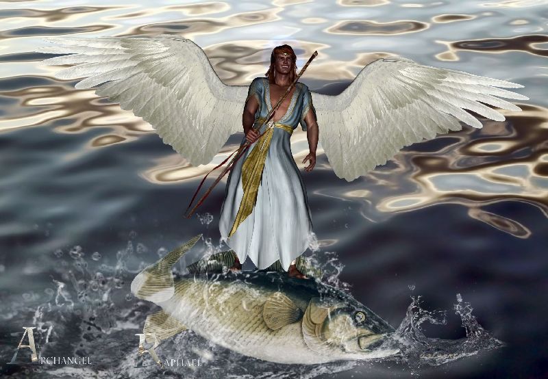Saint Raphael the Archangel is sometimes portrayed standing atop a large fish.