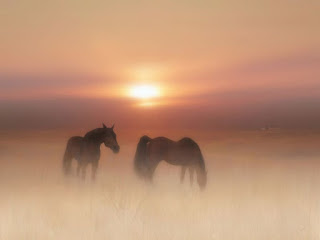 HORSES-Horses in a misty dawn T-shirt by Valzart | Society6